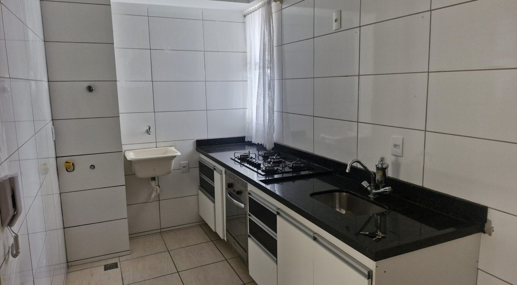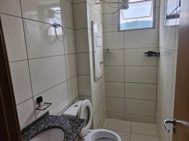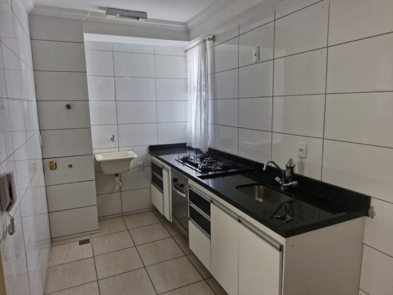 Apartamento com 02 quartos, sala, cozinha conjugada com área de serviços, banheiro, 01 vaga de estacionamento, acabamento em cerâmica e azulejos, bancada em granito, armários de cozinha, fogão, prédio individual com elevador.