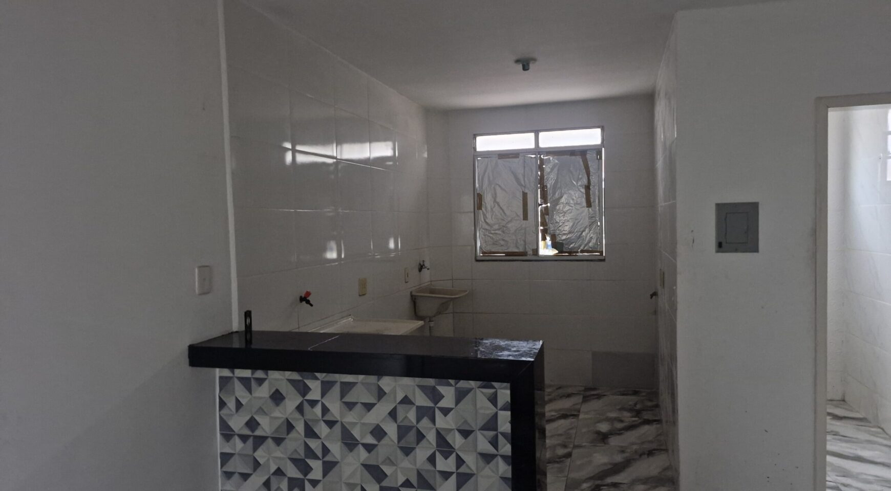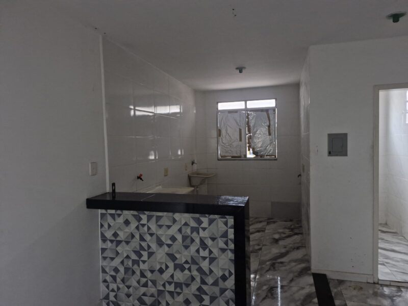 Apartamento com 02 quartos, sala, cozinha, banheiro, área de serviços, estacionamento, bom acabamento em cerâmica e azulejos, próximo à comércio, linhas de ônibus, ótima localização.