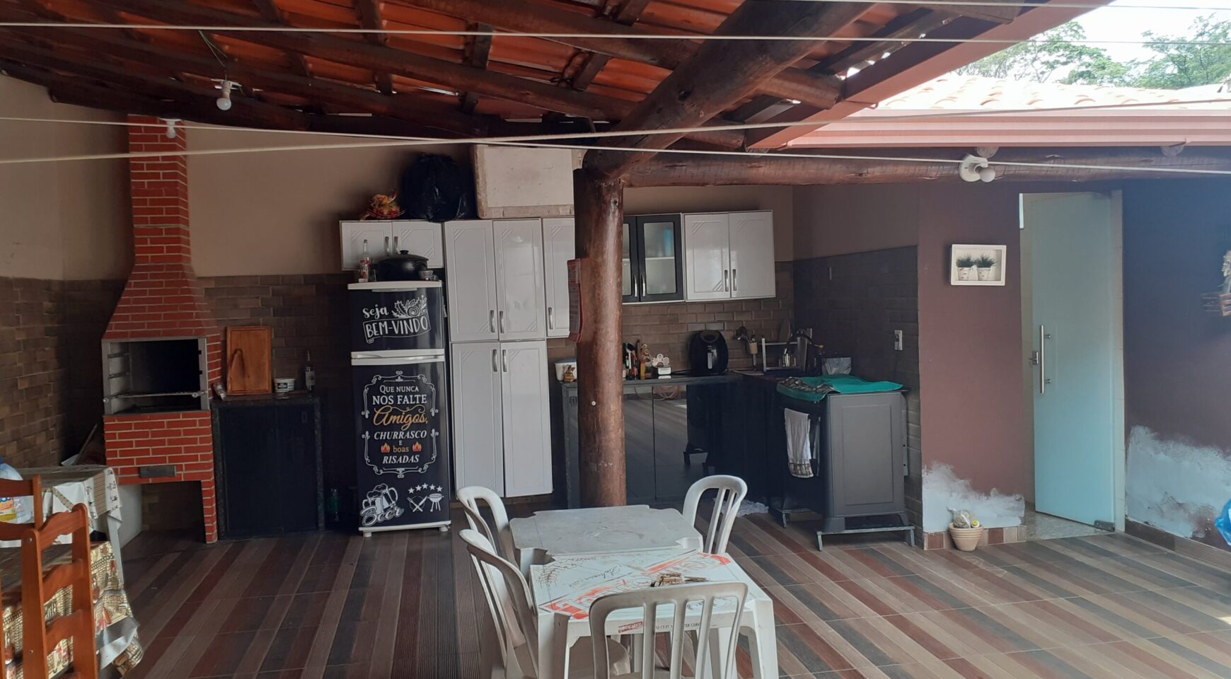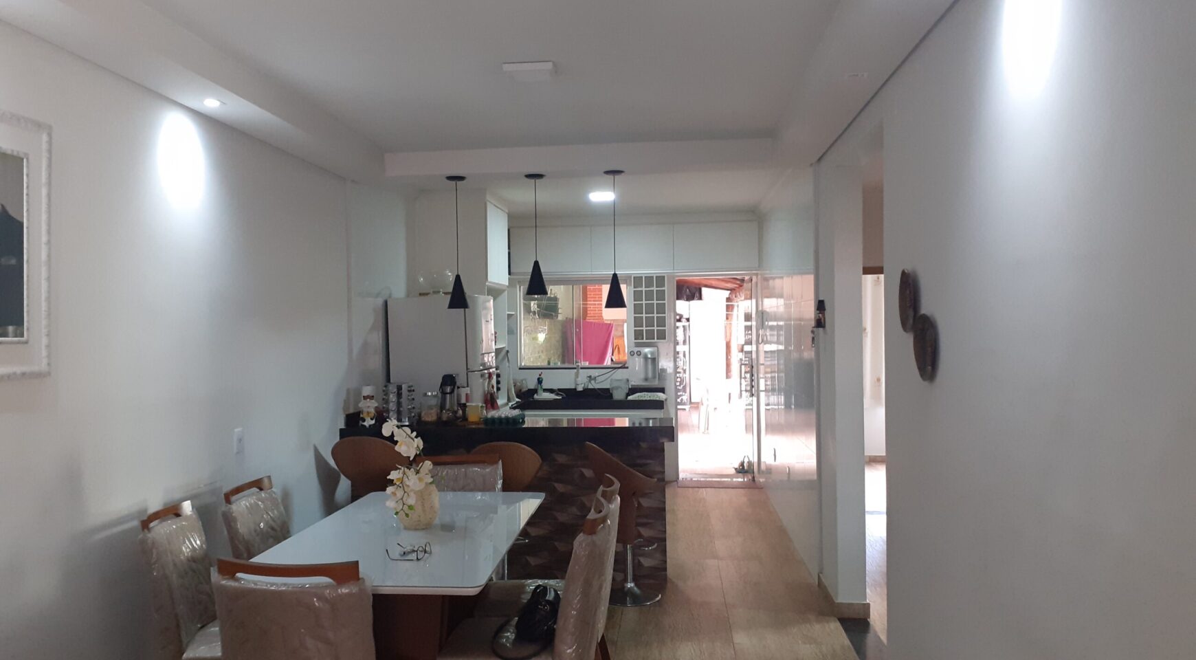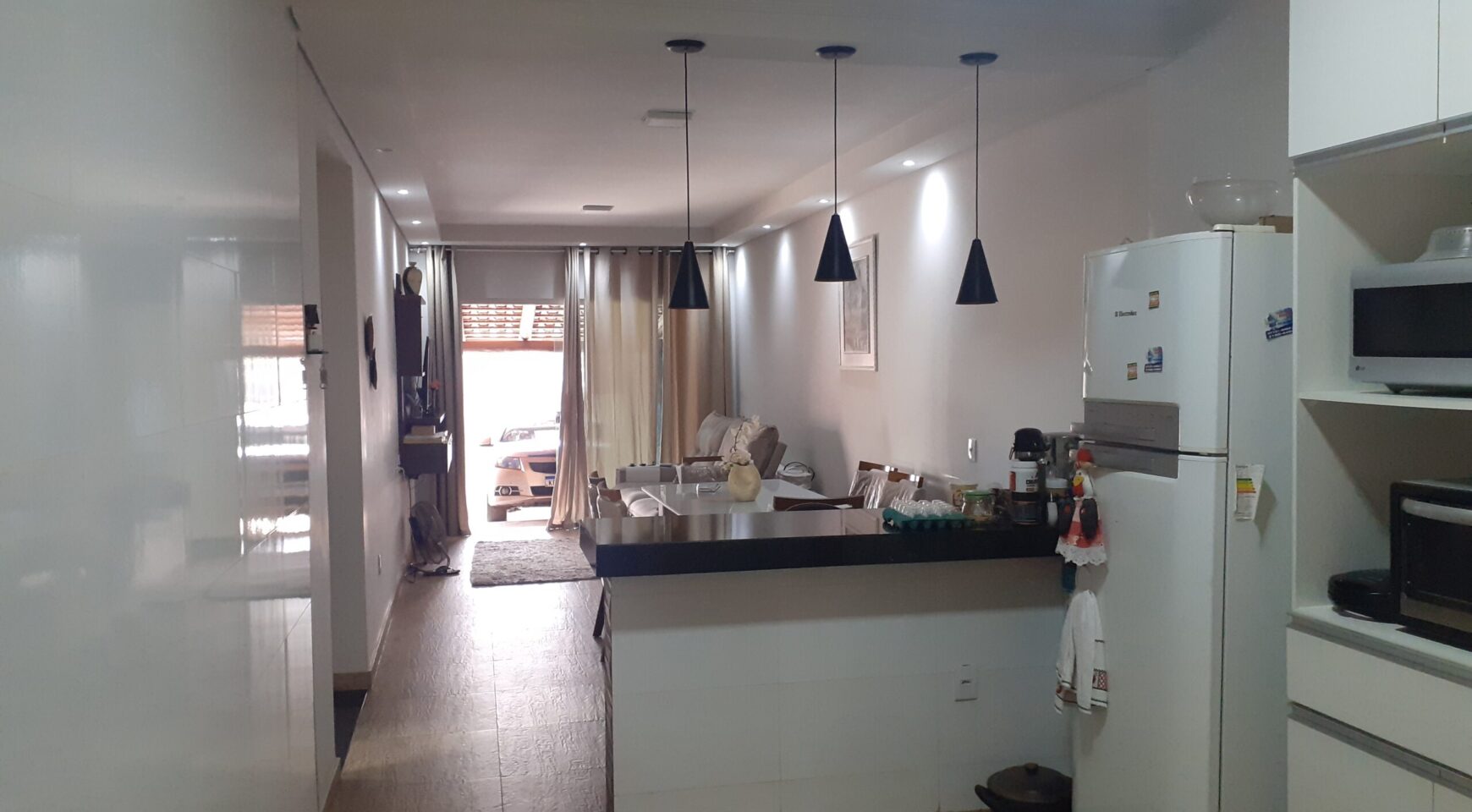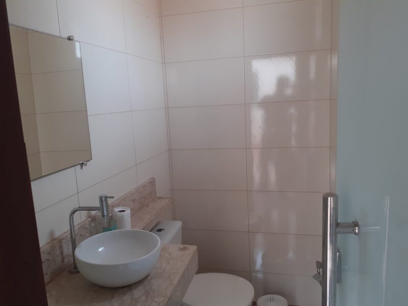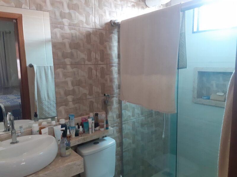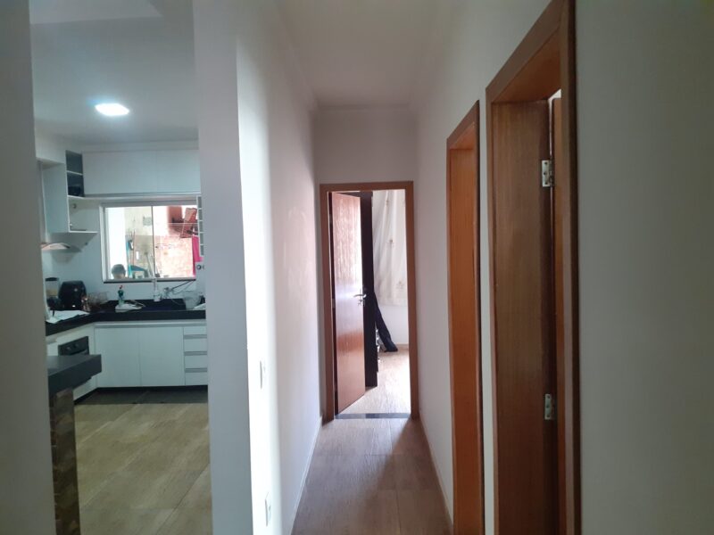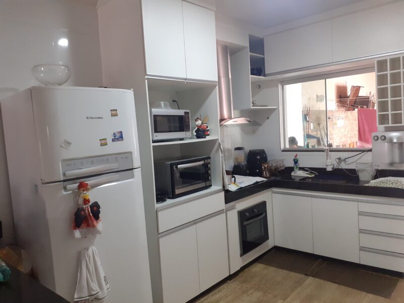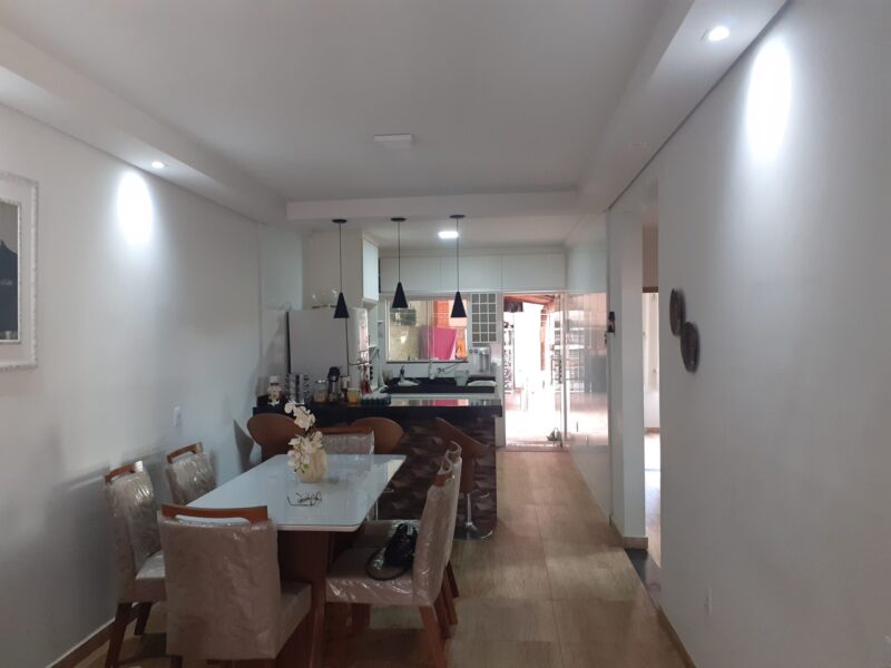 Casa com 03 quartos, suíte, sala, cozinha americana, banheiro social, área de serviços, área de churrasqueira com banheiro, garagem para 03 carros, excelente acabamento, janelas em blindex, lote com 210m2.